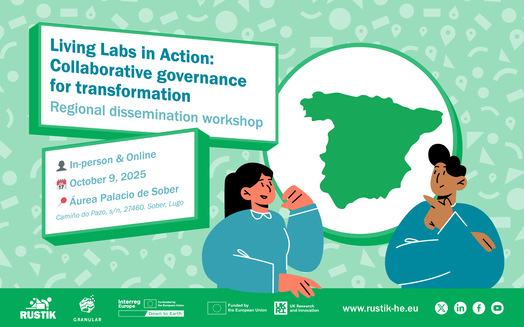 On October 9, 2025, the RUSTIK project, in collaboration with the European initiatives Granular and Down to Earth, will organize its second regional workshop, taking place in Sober, Galicia (Spain) and online. The event will bring together researchers, practitioners, local and regional policymakers, and civil society representatives to explore collaborative approaches to rural sustainability and development.